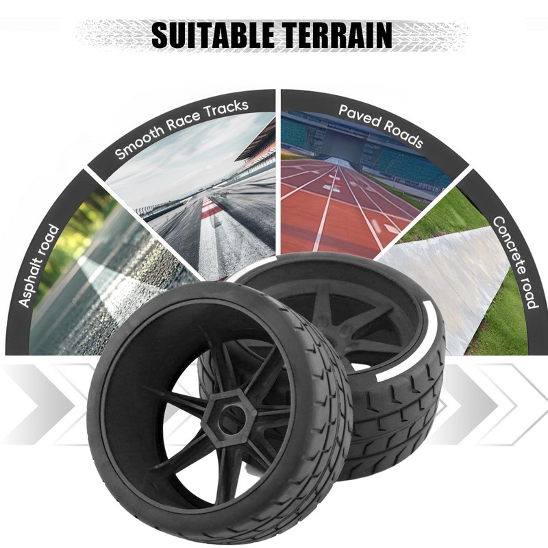 - 【Excellent Performance】 This RC on road racing tires are featuring an anti-skid tread design, these tires provide exceptional grip and stable handling across multiple terrains - including pavement, dry grass, hard-packed dirt and loose surfaces. The durable construction ensures long-lasting performance in all driving conditions.
