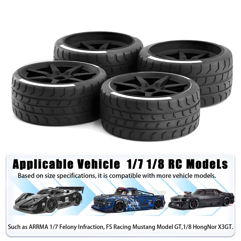 - 【Note】The 1/7 1/8 RC on road tires and 17mm hex wheel. Please note this is not glued on rims, final gluing is required to secure the bond.