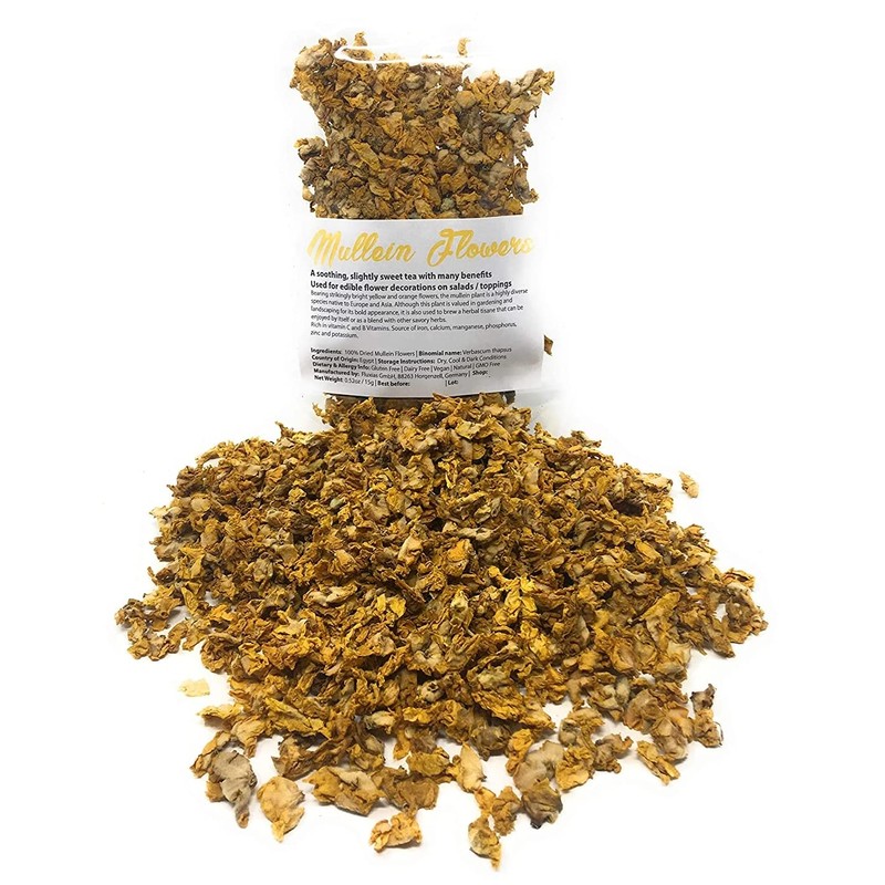 100% Dried Mullein Flowers (Verbascum thapsus) | Net Weight: 0.52oz / 15g | Soothing, slightly sweet tea with many benefits - Used for edible flower decorations on salads/toppings