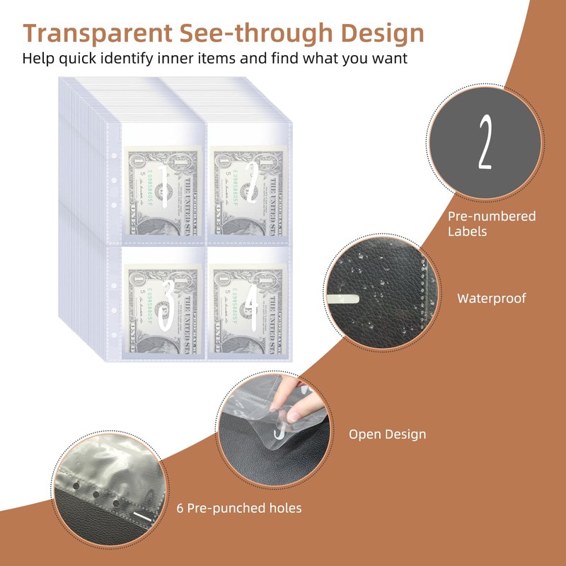 DONBAO 100 Envelopes Money Saving Challenge Binder, A5 Budget Binder with Envelopes and Challenge Tracker, Savings Challenges Planner Book to Save $500, $1000, $5050, $10000 (Brown)