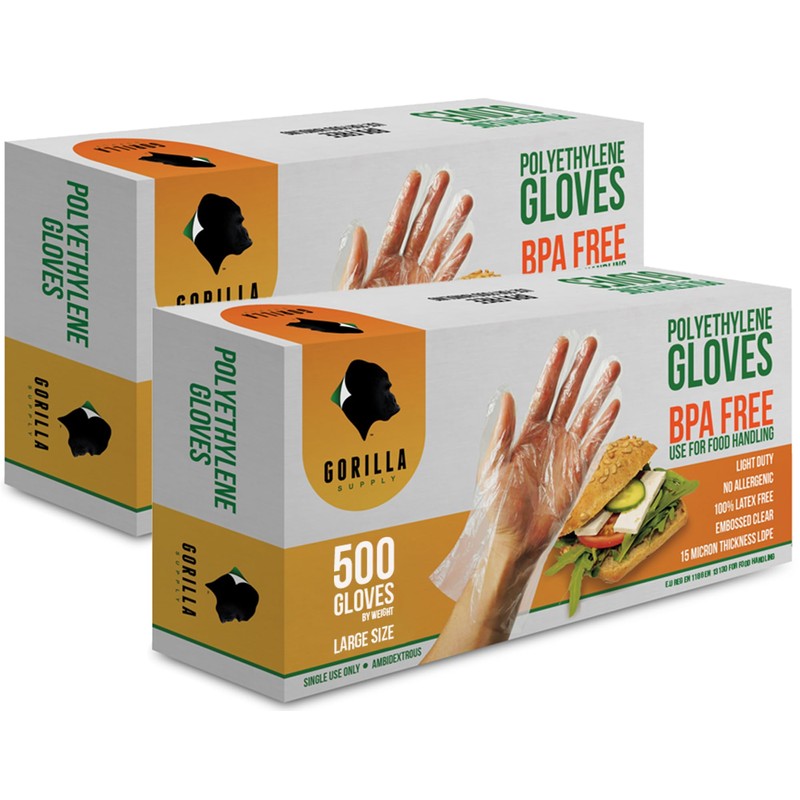 1000 BPA Free Disposable Poly PE Gloves Large, Food Grade, 2 Pack of 500 by Gorilla Supply