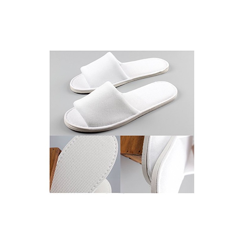 10x Pairs White Towelling Hotel Slippers Open Toe Disposable Party Guest Shoes(HG0006 x 10)