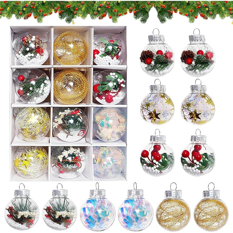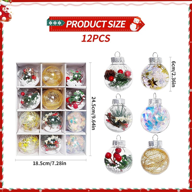 - 🎄 Packaging size: You will receive 12 ×6 cm Christmas ornaments balls transparent. You can choose different colors of clear baubles wholesale inside the packaging according to the home decoration environment, which is very suitable for Christmas trees, desk trees, wreaths, and garlands