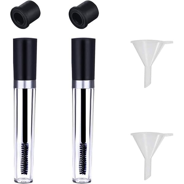 2 Pcs 8 mL Empty Mascara Tubes With Eyelash Wand, Rubber Inserts and Funnels for Castor Oil, Ideal Kit for DIY Cosmetics, Includes 2 tubes, 2 rubber inserts and 2 funnels