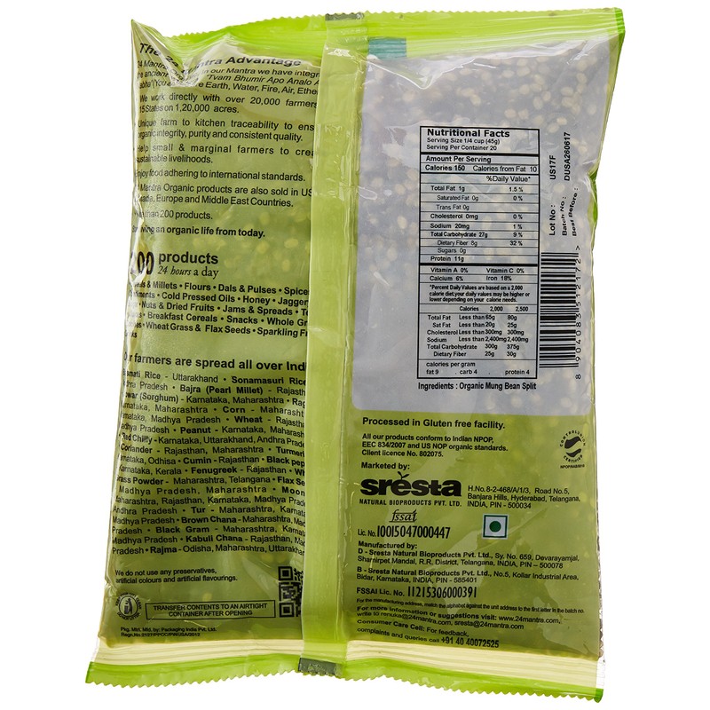 24 Mantara 24 Mantra Organic Green Moong Dal - 2 Lb,, ()