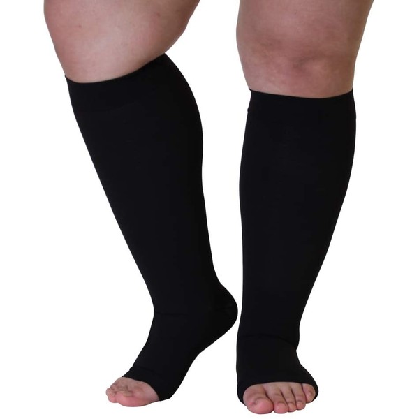2XL Made in USA Mojo Opaque Plus Size Compression Socks Knee-Hi 20-30mmHg Wide Calf Graduated Compression Stockings Black Open Toe Unisex