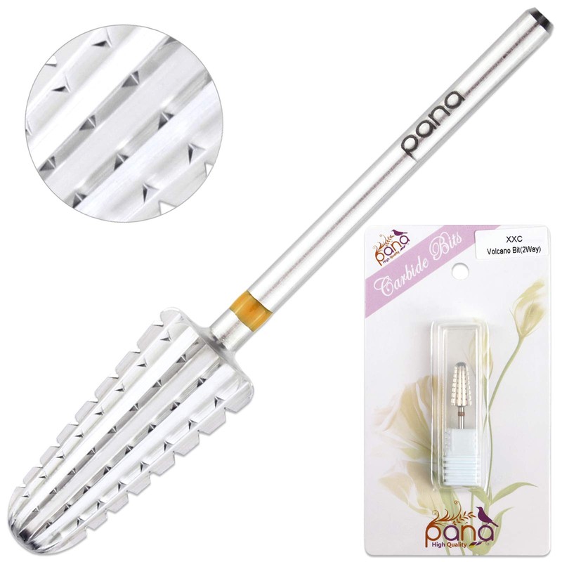 3/32" Two Way Volcano Nail Carbide Bit for Right or Left Handed Drill Machine User - Fastest Safety Remove Acrylic Gel (Double Coarse - 2XC, SILVER)