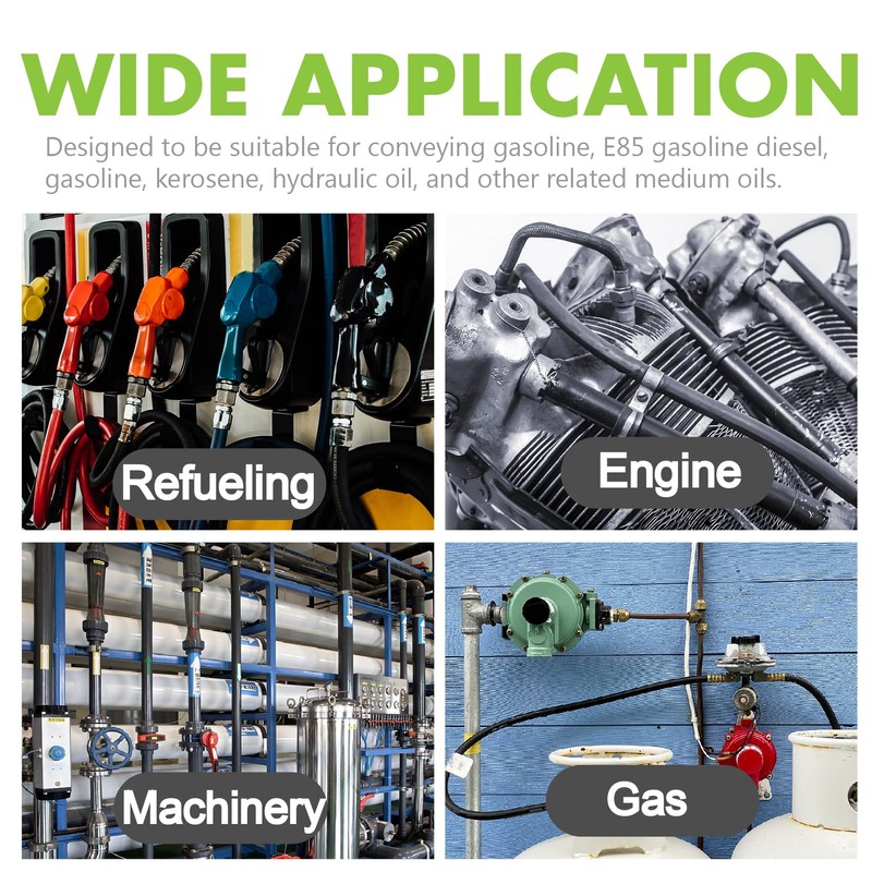 - The rubber fuel line hose can be compatible with oil, diesel, grease, biodiesel, gasoline, hydraulic, water and air for use in cars, buses, trucks,boat, motorcycle,harley and more.