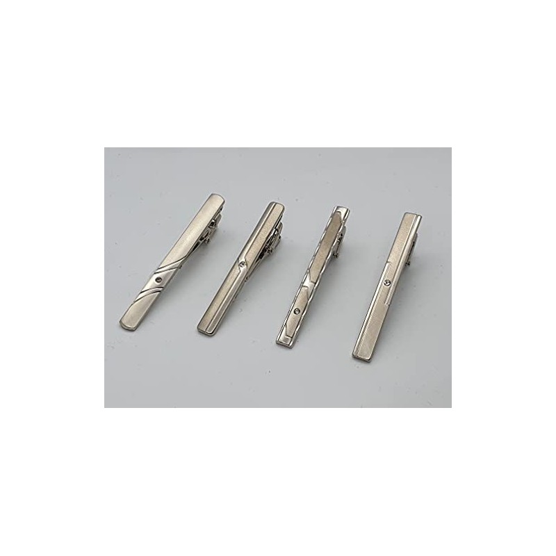 4 Pack of Stylish Silver Tie Clips Tie Bar Clips Tie Pins Set with a Dual Hinge