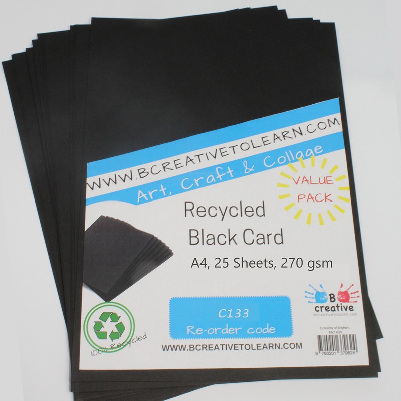 A4 100% Recycled Black Coloured Thick Card 270gsm Pack of 25 Sheets by BCreative®
