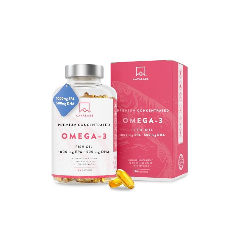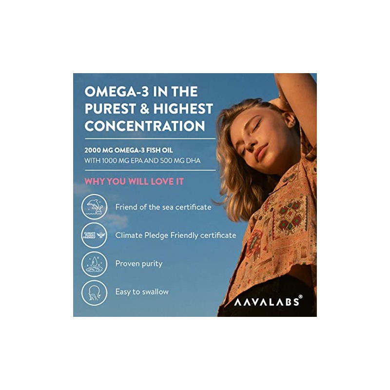 AAVALABS AAVALABS Omega 3 Fish Oil 2000mg per Daily dose (2 softgels) - 1000mg EPA + 500 mg DHA per dose - High Strength Omega 3 Fatty Acids Supplements - Molecularly Distilled - 120 Capsules - 60 Days Supply