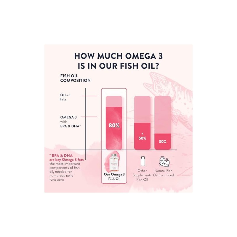 - STAY SHARP: To support cognitive function, we've made sure our Omega 3 capsules high strength contain a healthy amount of DHA. DHA contributes to maintaining normal brain function (the positive effect is achieved with a daily intake of a minimum 250 mg DHA). Focus on the important things in life while our capsules take care of your daily DHA needs.