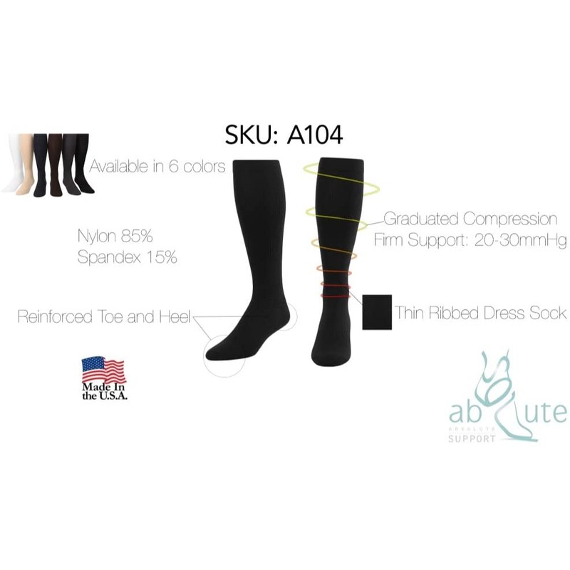 • Absolute Support is our private line of High Quality Compression at Value pricing. Just like the big name "brands", we take 4-6 compression measurements at precise intervals between the ankle and end of garment.