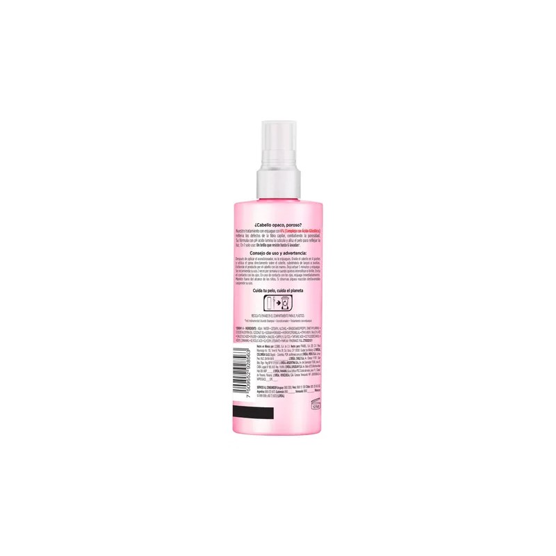 Utilizar después del acondicionador, divide el pelo en 4 secciones y rocía el producto las veces que sea necesario para cubrir de largos a puntas, extendiendo el producto con las manos. Déjalo actuar 5 minutos, y enjuaga si lo consideras necesario. Se recomienda su uso 2 veces por semana o cuando quieras intensificar el brillo de tu pelo.