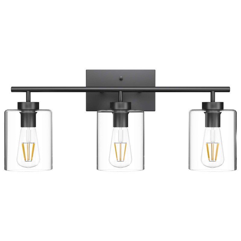 Aipsun 3 Lights Black Vanity Light Fixtures Over Mirror with Clear Glass Shades Industrial Wall Light Fixture for Bathroom(Exclude Bulb)