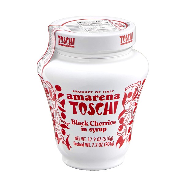 A classic topping for Italian gelato, consider these intensely sweet and flavorful Amarena cherries as the gourmet upgrade from Maraschinos. The Amarena is a type of cherry with a sour and refreshing taste that grows in the Vignola area of Italy. It is a summer fruit that is ripe for picking in July. Carefully selected and pitted, Toschi's Amarena Cherries are direct from the mountains of Vignola. Today, just as sixty years ago, they are sweetened and ready to garnish desserts, cakes and 'semifreddi' (ice-cream cakes) and to embellish ice-cream. These sweet delights are perfect to garnish cocktails, ice cream, smoothies and slushies. Here you'll find them luxuriously packed in a decorated white jar.