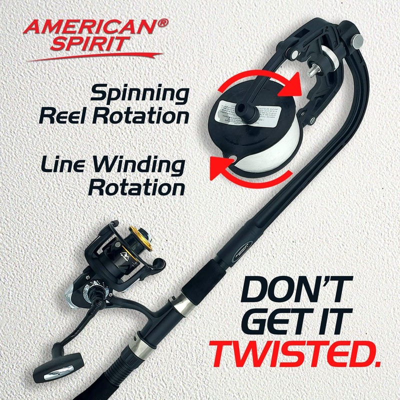 - ELIMINATES YOUR LINE TWIST: The American Spirit Ultimate Line Winding System is the must-have fishing reel spooler tool for every angler. Its compact, durable, and user-friendly design ensures hassle-free spooling of spinning and baitcasting reels, eliminating annoying knots and line twists. Simplify your fishing experience with this essential fishing line spooler machine.