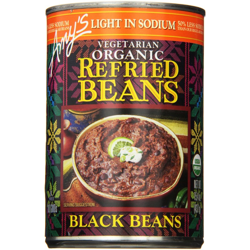 - Six 15.4-oz cans of Amy's Organic Vegetarian Refried Black Beans, Light in Sodium