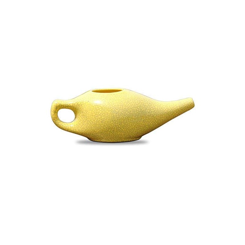 ANCIENT IMPEX Ceramic Neti Pot for Nasal Cleansing with 5 Sachets of Neti Salt | Compact and Travel-Friendly Design | Natural Remedy for Infection, Sinus and Congestion (Crackle Yellow)