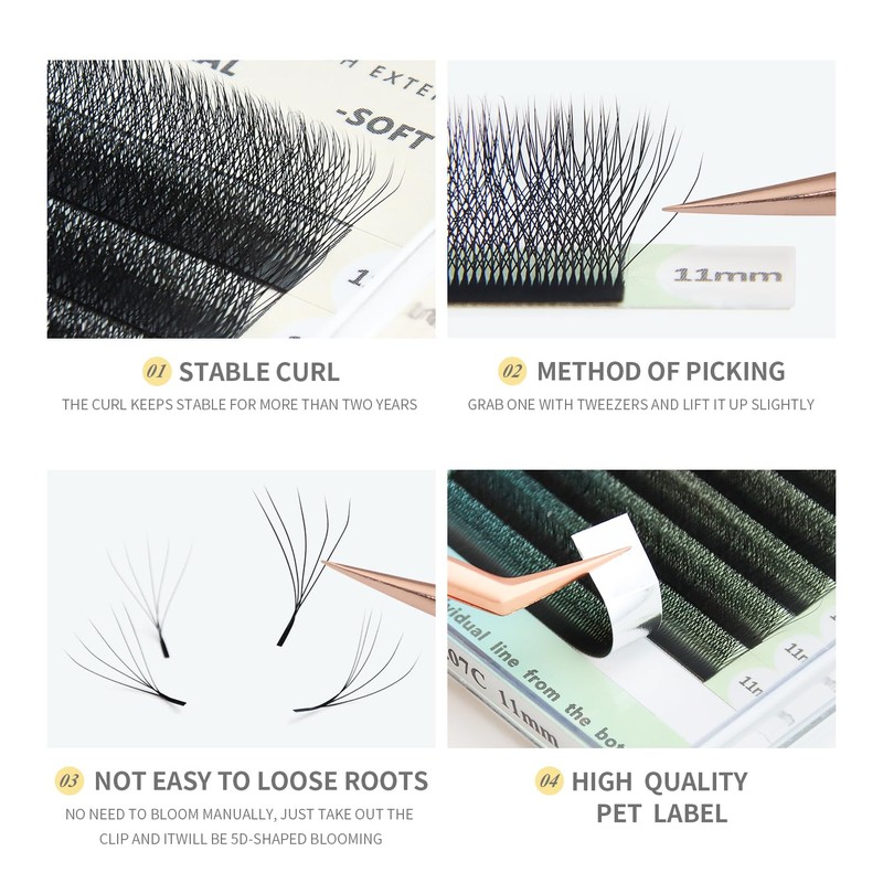 - ❤Convenient application:5D premade lashes save more time for grafting.Foils wallpaper is convenient for picking up and transfer, there is no residue on your lashes tile.Pre fan Russian eyelashes are double heated during the manufacturing process to maintain perfect curling.The grinding treatment makes the bottom of the fans thinner, easy to graft and can make it blend better with the glue, making the grafting effect more natural and lighter.