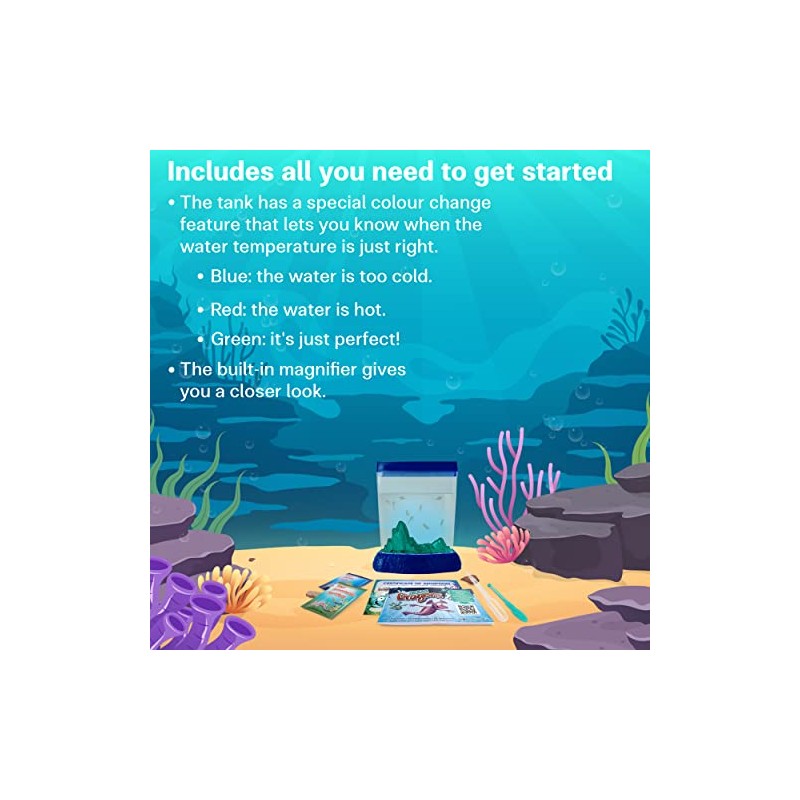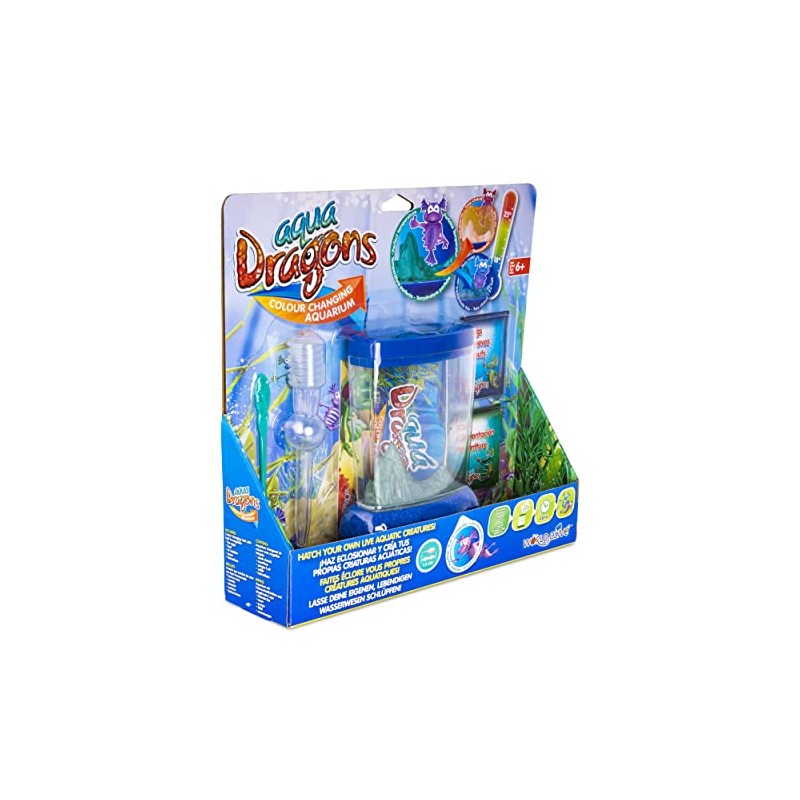 - Box full of wonders: the set includes an aquarium, Aqua Dragons eggs, food, a spoon and instructions for hatching and growing aquatic life at home. Just add water to see them hatch in 2-3 days and grow up to 0.6 inches. Every 2-3 days feed them to watch their evolution with a tank with built-in magnification and a color-changing mountain