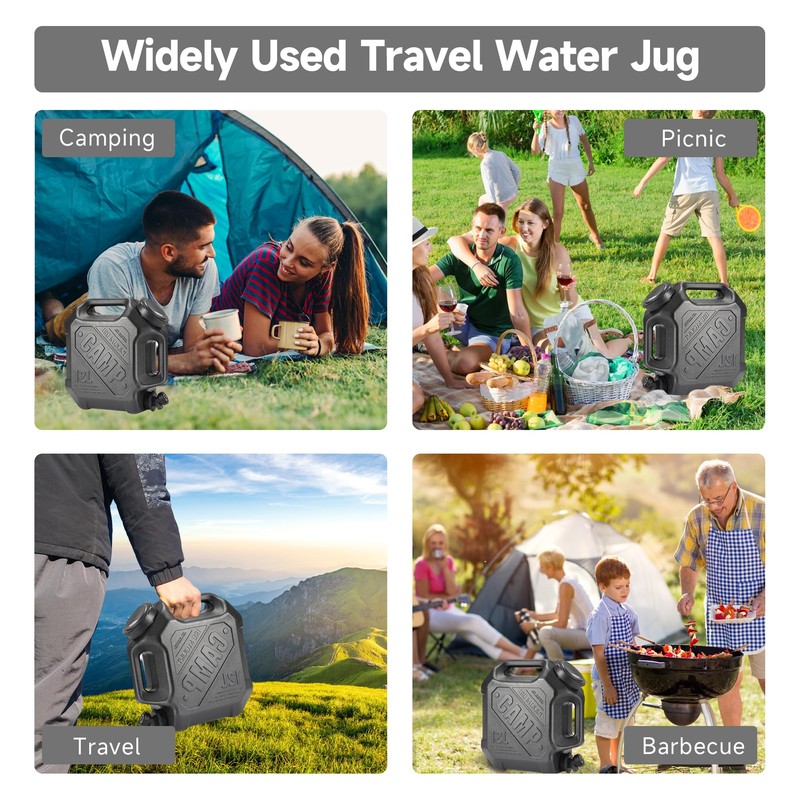 - 3.2 Gal Large Capacity: The 3.2 gallon water jug is enough for two people to camping for 3 days. At the same time, the water tank will provide you with emergency water in places where water resources are limited