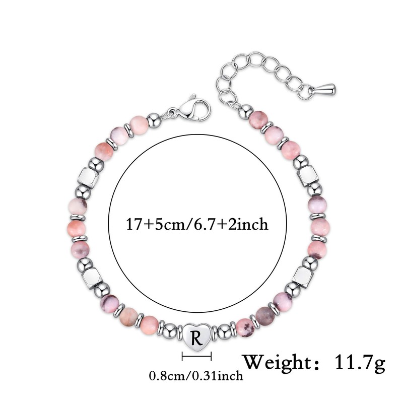 Astellea Pink Zebra Bracelet for Womens Girls, Charm Initial Bracelet Healing Natural Stone Gifts with Card Letter Jewellery for Friend Sister Daughter Mum at Mother's Day Christmas Birthday (R)