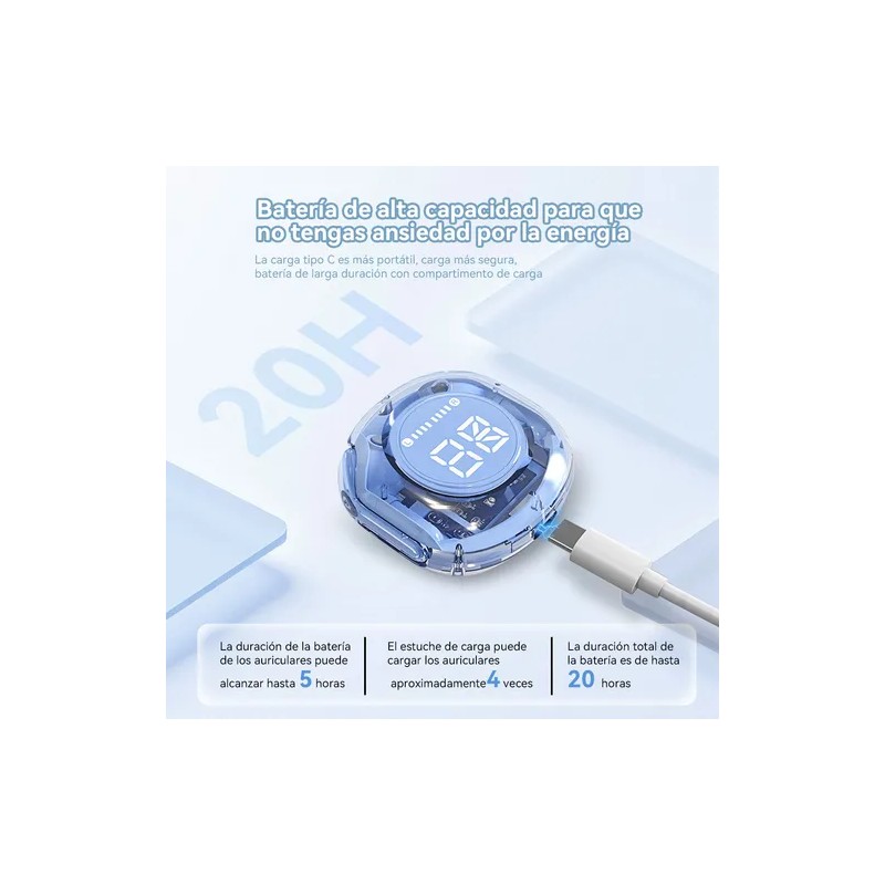 Audífonos Bluetooth 5.3 In-ear Con Pantalla Digital Y Diseño Celeste