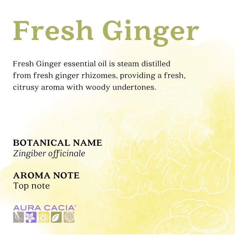 - AROMATIC - The aroma of fresh ginger is found to be more pleasing than that of ginger distilled from the dried root, while still providing the plant’s vast benefits. Aura Cacia Ginger Essential Oil typically comes from Indonesia and China.