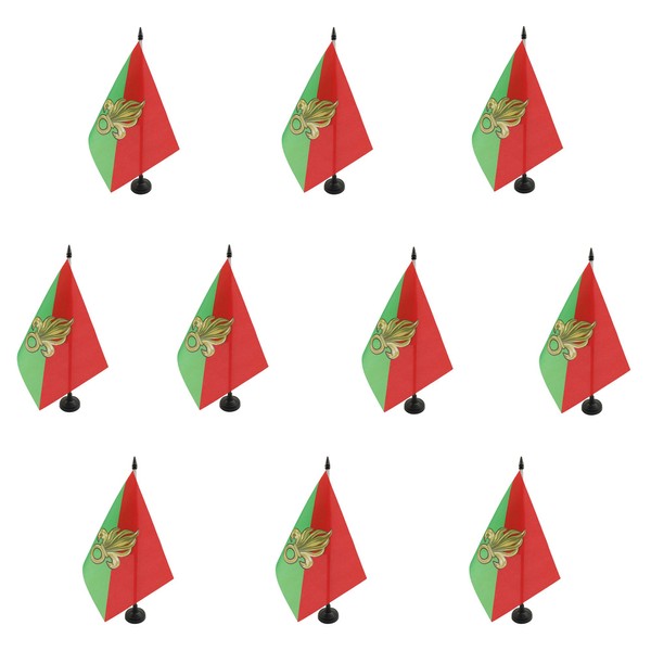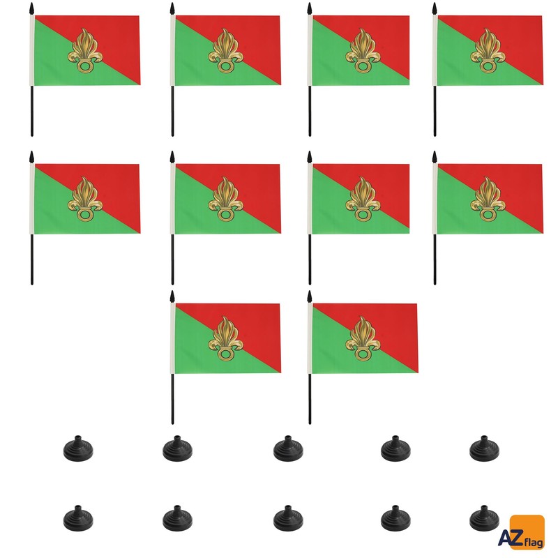 AZ FLAG - Set of 10 French Foreign Legion Table Flag 5'' x 8'' - 10 Small Army of France Office Flags 100% Polyester 21 x 14 cm - Mini Desk Flag with 10'' Pole and Black Plastic Base