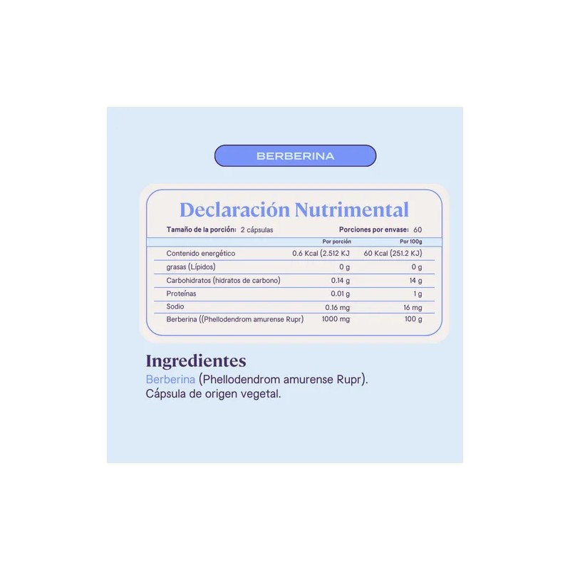 DOSIS TERAPÉUTICA - 1000mg de Berberina pura por porción (2 cápsulas)