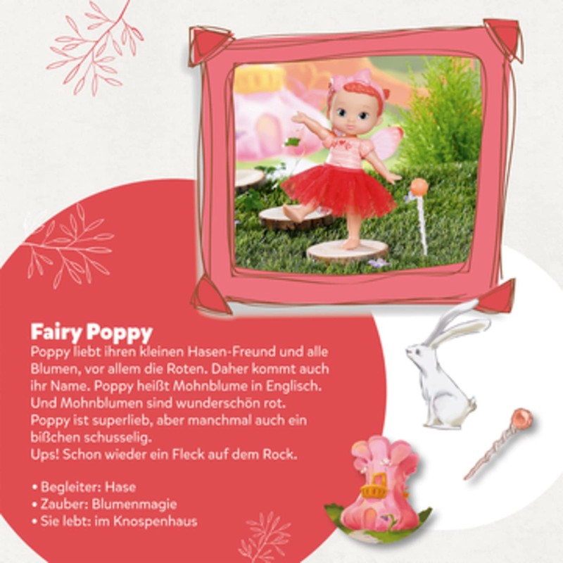 BABY born Storybook Fairy Poppy 18 cm, Fairy Doll with Fluttering Wings, Colour Changing Tattoo, Fairy Light, Wand Backdrop and Picture Book, 831823 Zapf Creation