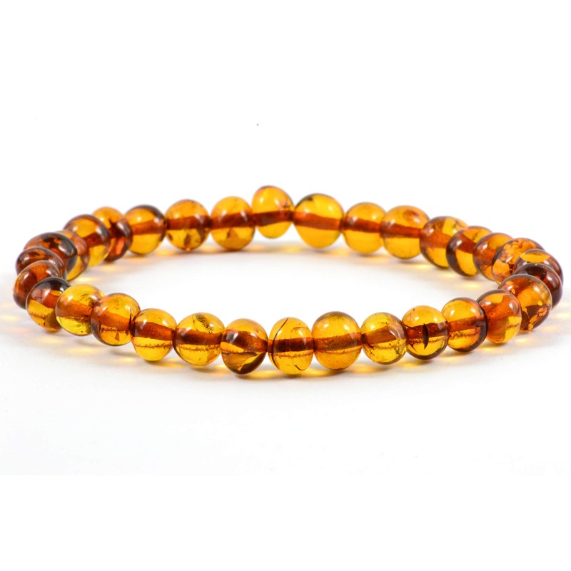 Baltic Amber Bracelet for Adults Made on Elastic Band- Natural Amber from Baltic Region, Genuine Baltic Amber (Cognac, 7.5 inch)