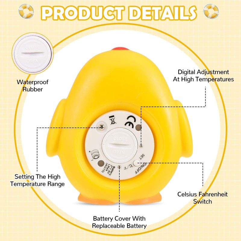 - [Bathing toy] In the bath, the baby will have a strong interest in Baby Bath Thermometer. Newborn Floating Toy floats on the water, and the baby's attention will be attracted by it. Even children who do not like to take a bath will take a happy bath. Our Bath Thermometer, 3D cartoon toys, will like both male or female babies