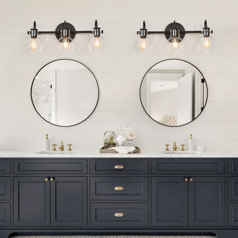 - [ Application Range ]: With the classic clear glass and black metal, the bathroom vanity light fixtures pairs well with most varieties style of home decoration. The vanity lights are ideal for your bathroom, hallway, kitchen, bedroom, powder room, mirror cabinets and other interior place.
