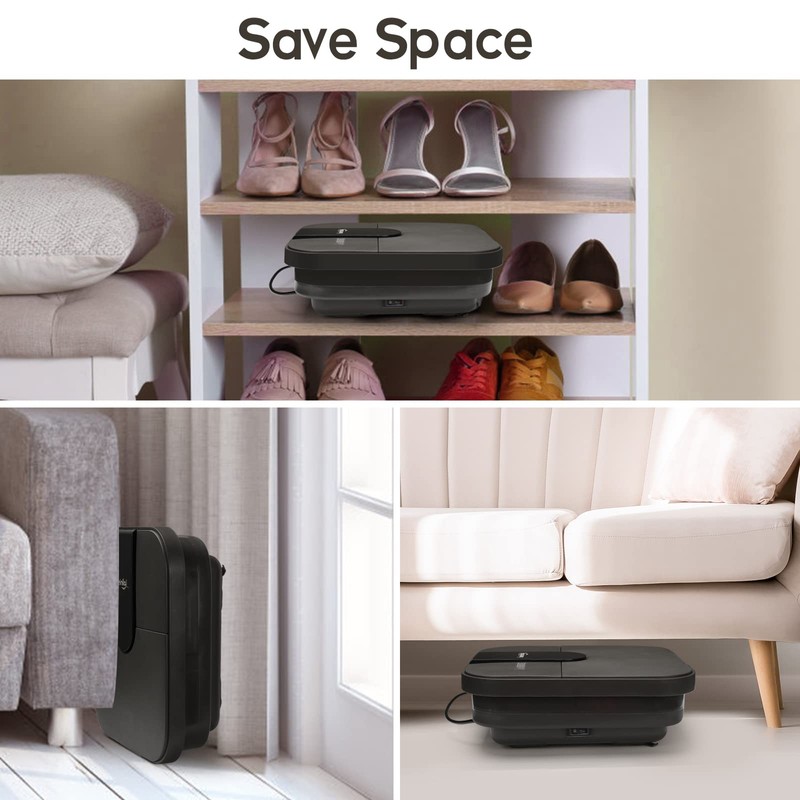 [Collapsible & Space-Saving Design]: The foot bath can be folded to just 4.53 inches high, making it easy to store in narrow spaces. It also includes a dust-proof cover to keep the inside clean when not in use. Note: This collapsible foot bath fits feet up to size 10.