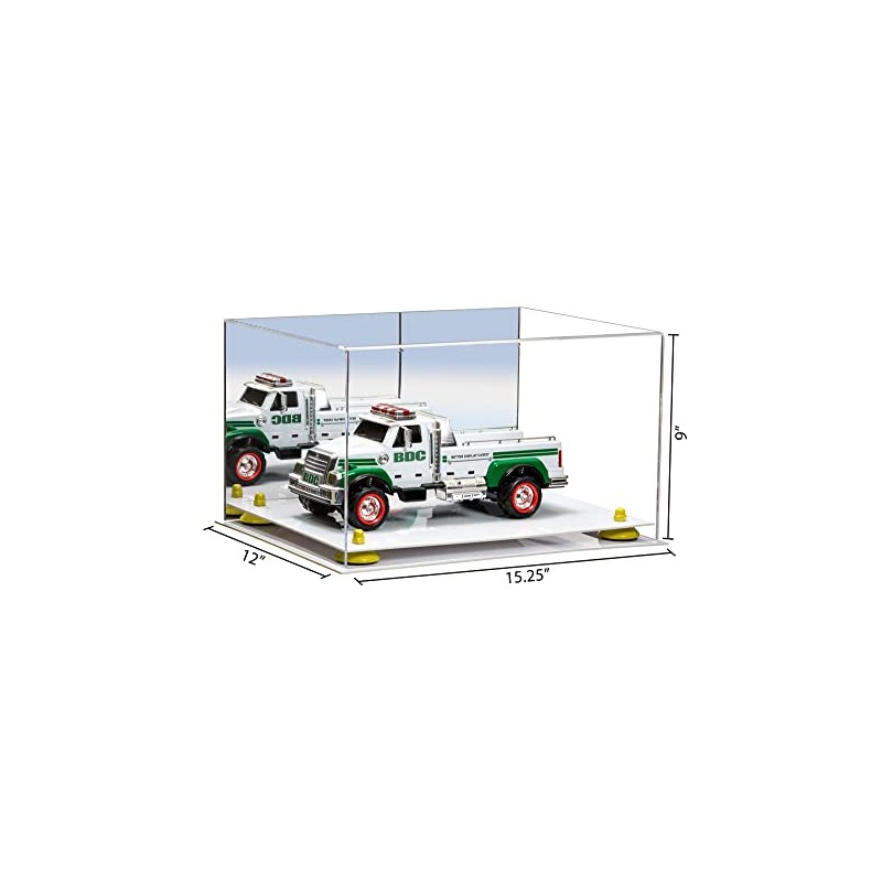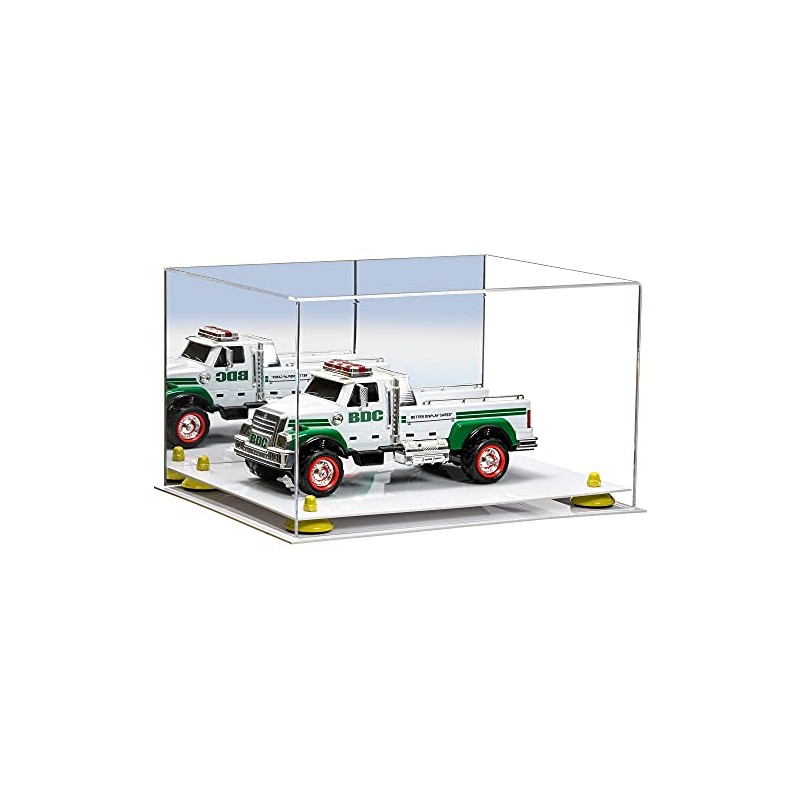 Better Display Cases Acrylic Versatile Display Case Display Case - Medium Square Box with Mirror Case, Yellow Risers and White Base 15.25" x 12" x 9" (V13/A082)
