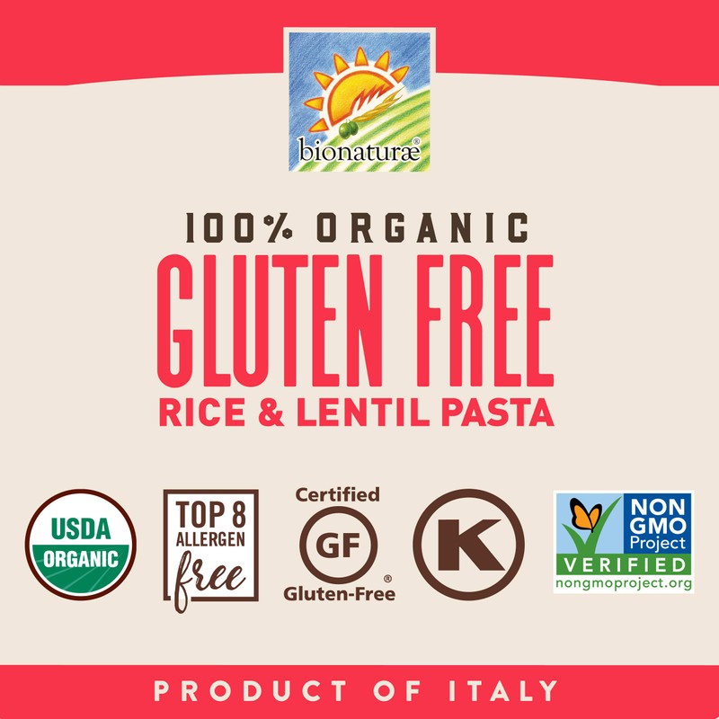 - ORGANIC FUSILLI PASTA - Gluten free noodles made with just rice & lentils. 8g of protein per serving, no soy, added starches or gums. Free of milk, eggs, fish, shellfish, peanuts, & tree nuts