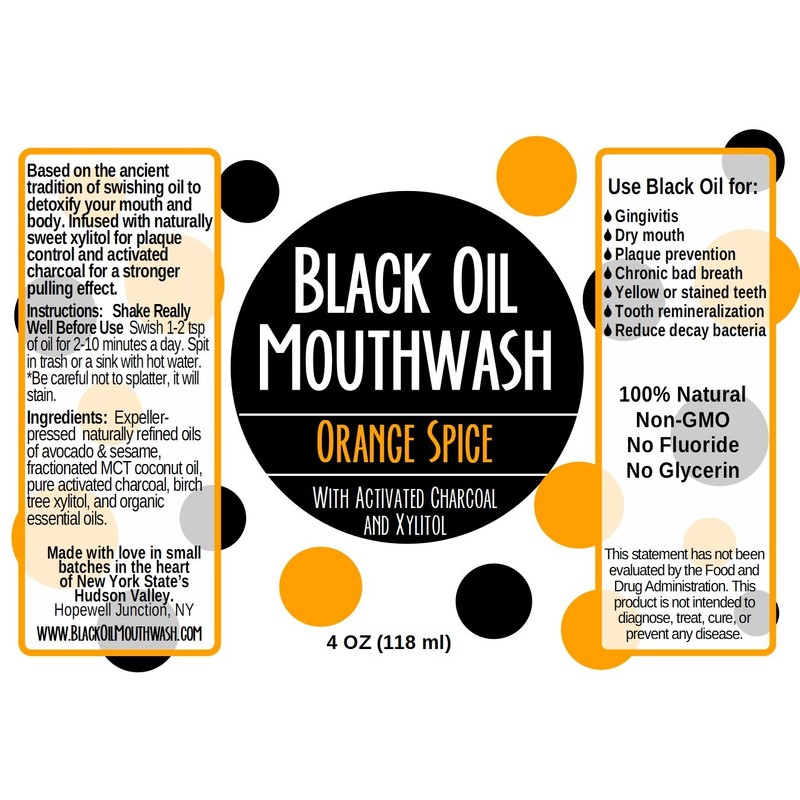 Black Oil Mouthwash, Sweet Orange Cinnamon Spice, Coconut + Sesame + Avocado Oil Super Blend, 4 oz, Activated Charcoal & Xylitol for Oil Pulling. Whitening, Dry Mouth & remineralization