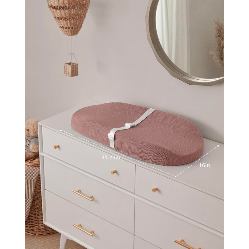 Blissful Diary Muslin Baby Changing Pad with Waterproof Lining Foam, Diaper Changing Table Pad with Cover for Dressers (Dusty Pink, Avocado)