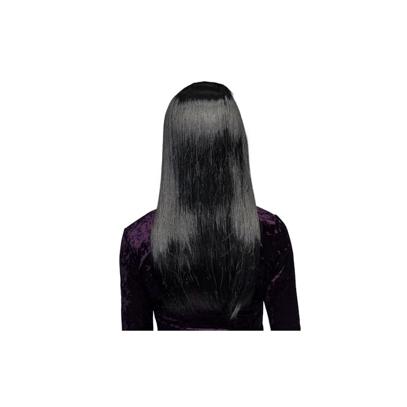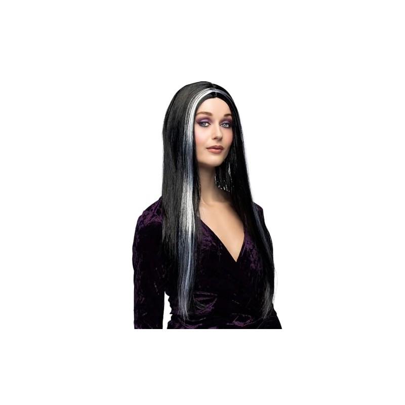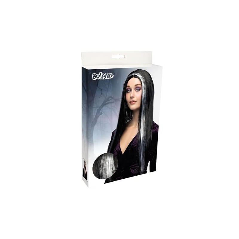 Boland 10102002 BOL86081 Witch Aurora Long Wig, Black with White Tuft, Standard Size