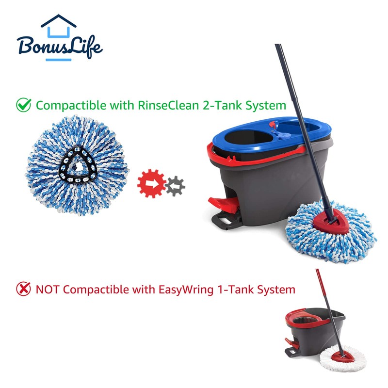 BonusLife microfiber mop replacement heads refills are completely compatible with O-Ceda RinseClean spin mop.