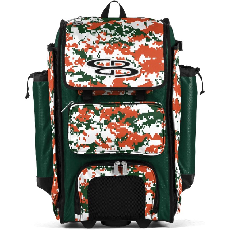 Boombah Rolling Catchers Superpack Baseball/Softball Gear Bag - 23-1/2" x 13-1/2" x 9-1/2" - Digital Camo Dark Green/Orange - Telescopic Handle and Holds 4 Bats - Wheeled Version