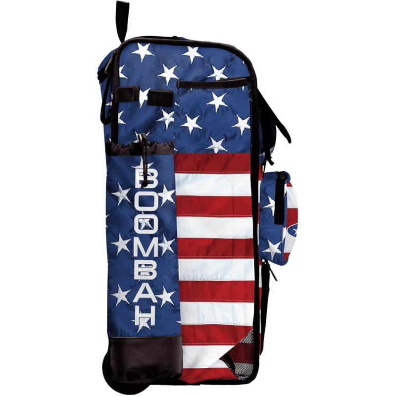 Boombah Rolling Catchers Superpack Bat Bag - 23-1/2" x 13-1/2" x 9-1/2" - Telescopic Handle - Holds 4 Bats - Wheeled Version - USA Flag Royal Blue/Red/White