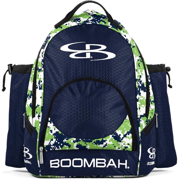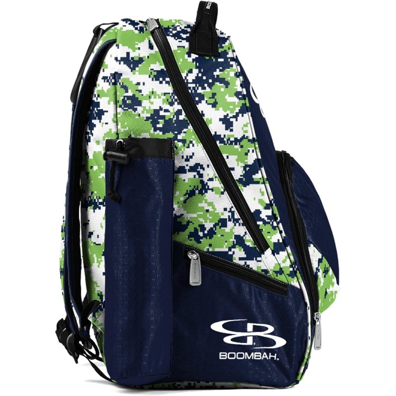 Boombah Tyro Baseball/Softball Bat Backpack - 20" x 15" x 10" - BPTCMC23 Camo Navy/Lime Green