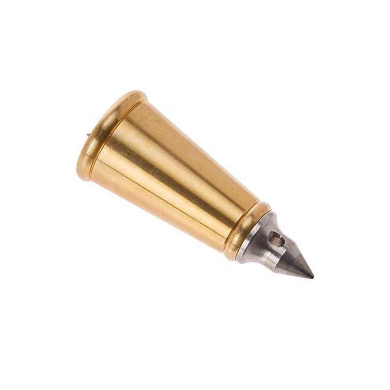 - Features a brass construction with an interchangeable rubber tip and metal spike tip