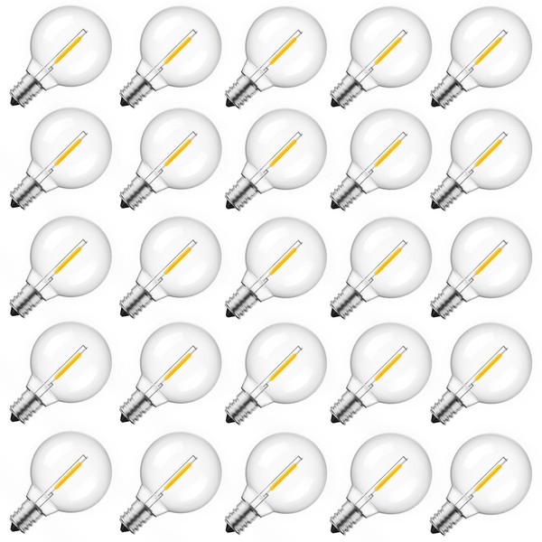 Brightown G40 Replacement LED Light Bulbs, 25 Pack Clear Globe Bulb fits E12 C7 Candelabra Screw Base Sockets, 1.5 Inch Dimmable Edison Light Bulbs for Indoor Outdoor Patio Decor, Warm White
