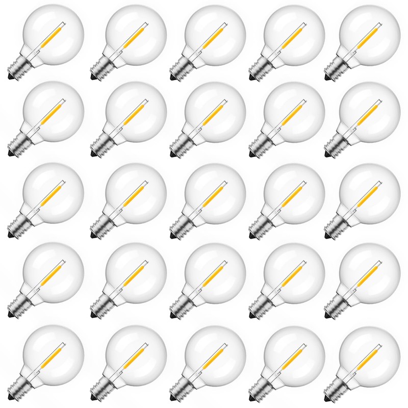 - Long Serving Life String Lights Replacement Bulbs: G40 led light bulbs with 20000h lifespan, that is 833 day for steady and bright serving, cost saving and hassel free