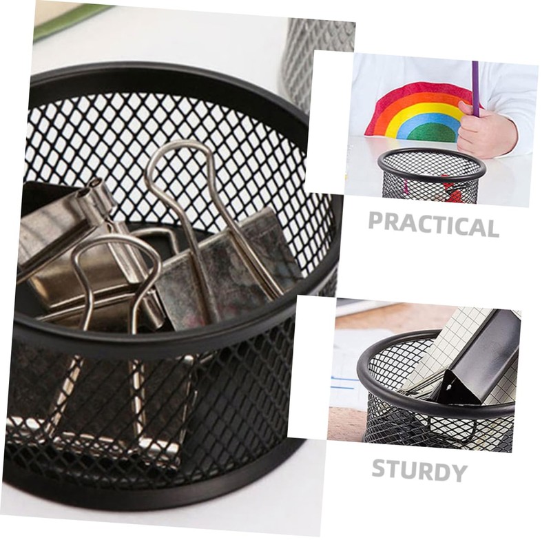 -Size:9.00X9.00X4.00cm/3.54X3.54X1.57in mesh desk organizer