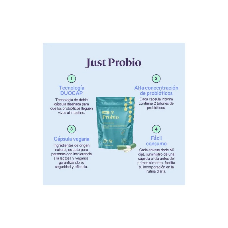 🦠 B-FIT B JUST PROBIO | 2 BILLONES DE UFC | TECNOLOGÍA DUOCAP® | 60 CÁPSULAS